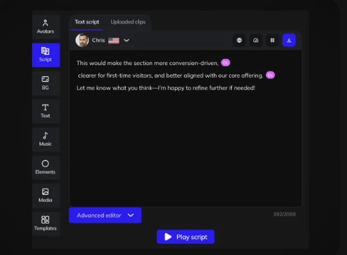 使用 Synthesys 制作视频的主要优势之一是即使在初步创作阶段之后也能进行修改。借助 Synthesys AI Studio,您可以轻松调整脚本、AI 角色、其外观、语音、背景等各个方面,让您能够在制作过程中的任何时间点灵活地调整视频内容。